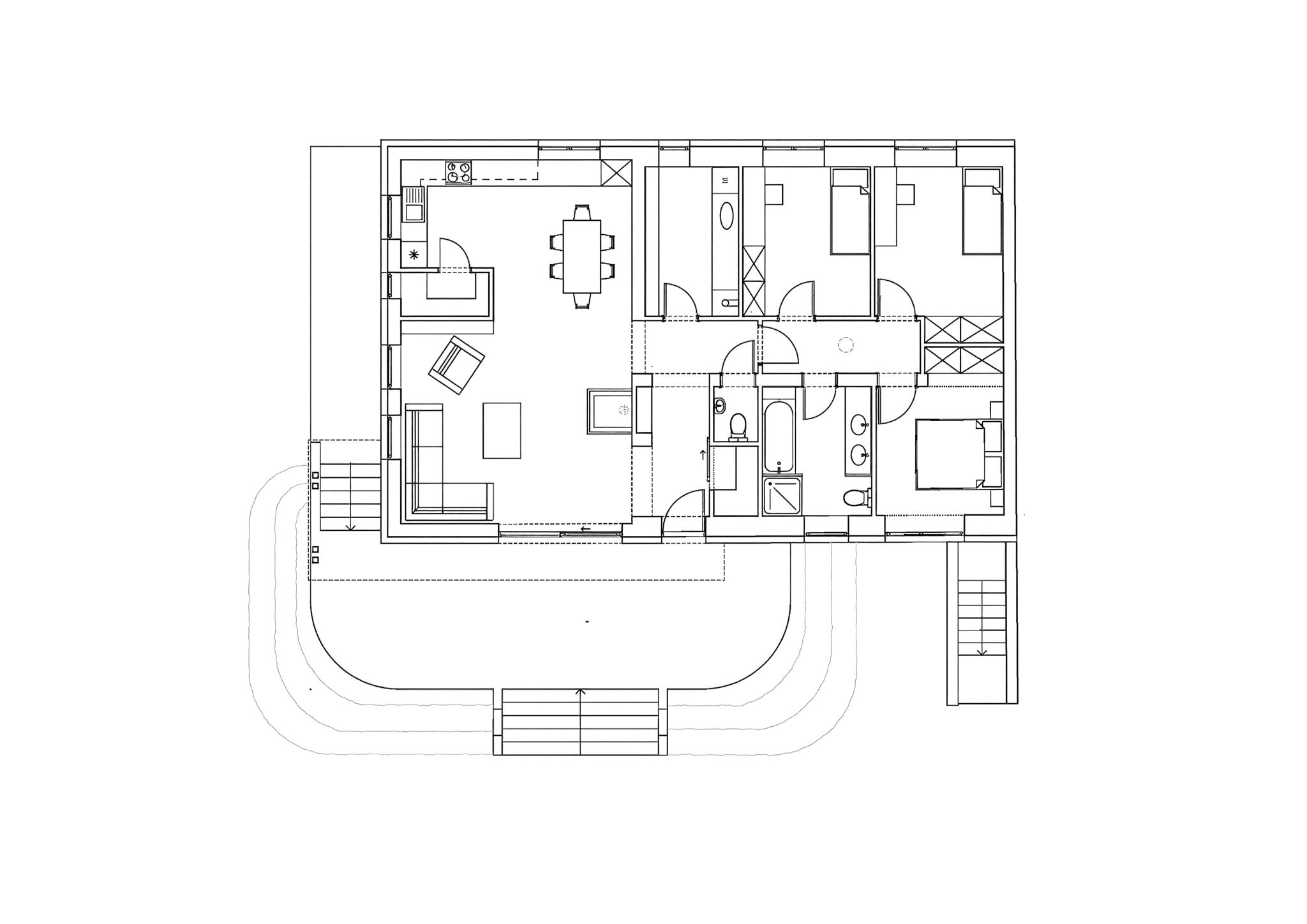 Ennek eredményeként egy olyan otthon született, amely egyszerre tiszteli a meglévő értékeket és felel meg a mai életformának: világos, jól szervezett terek jöttek létre, amelyek hosszú távon is rugalmasan alkalmazkodnak a fiatal család változó igényeihez.