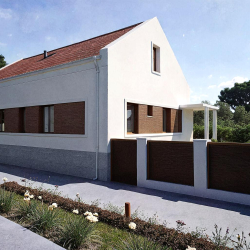 A projekt egy meglévő, ikresen csatlakozó családi ház átalakítására és bővítésére irányult.