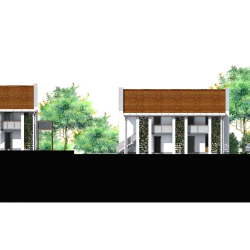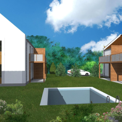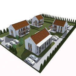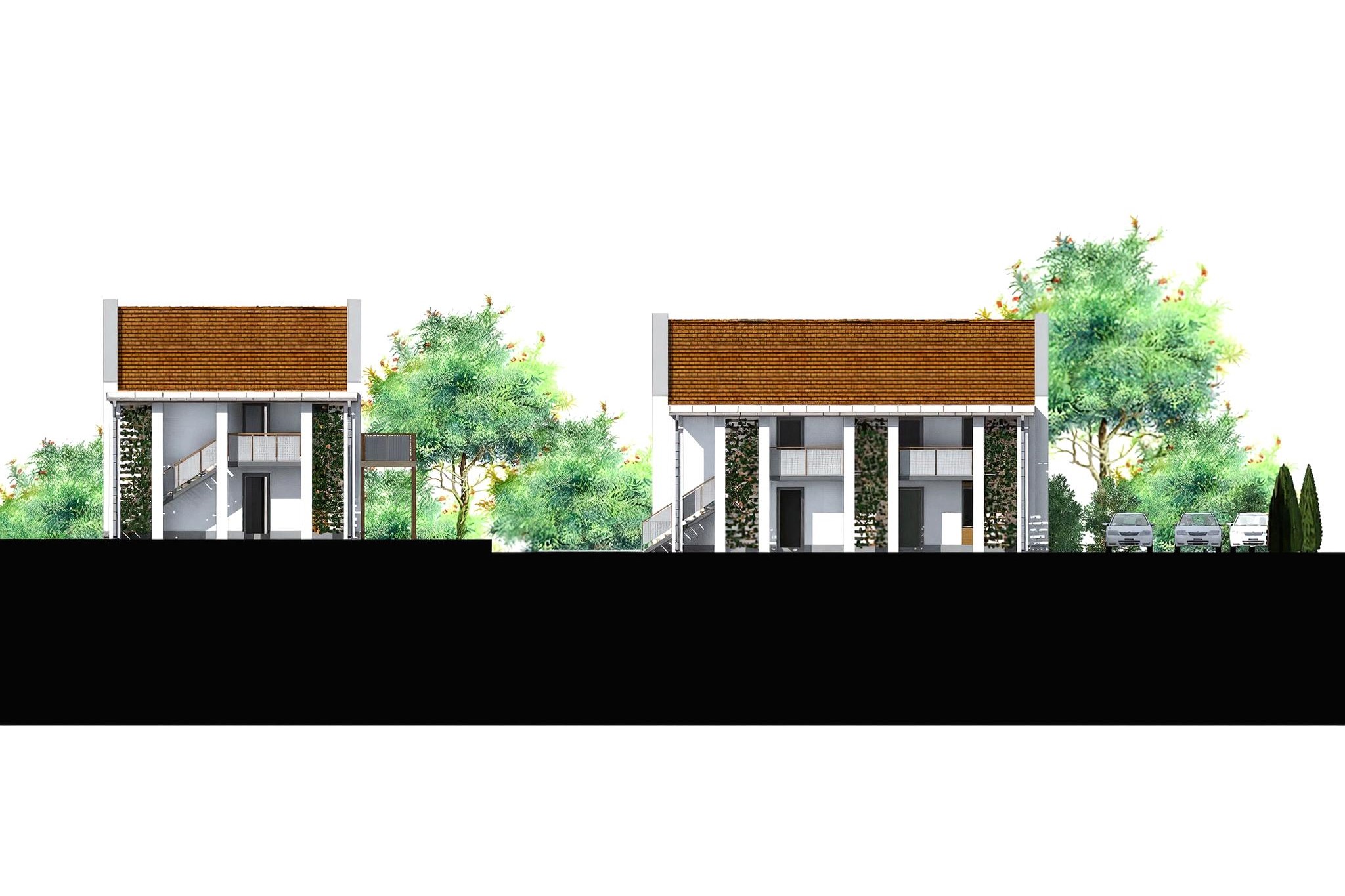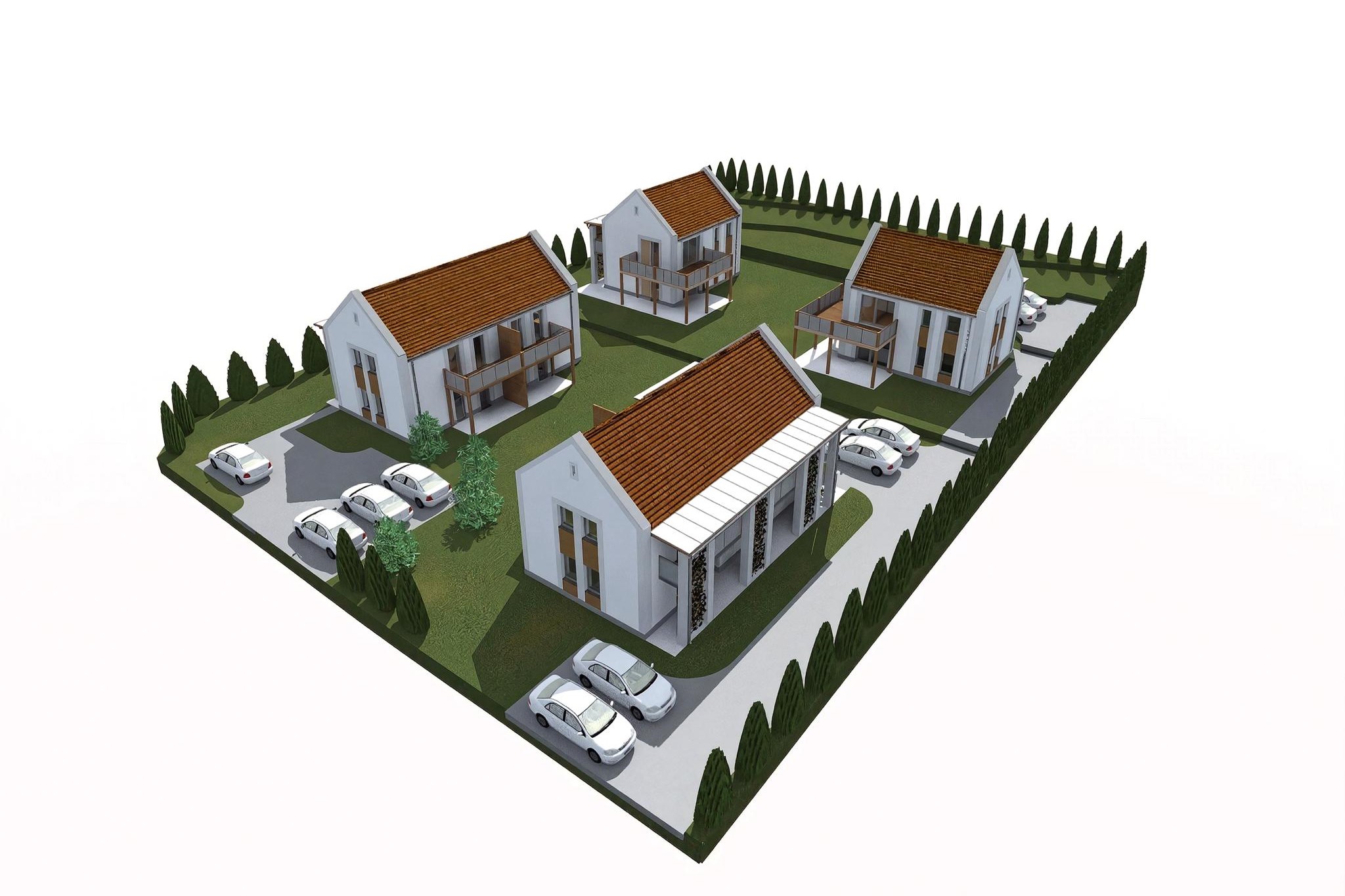 A projekt két telken valósult meg, négy épület elhelyezésével, amelyek mégis egy egységet alkotnak. Az épületek két variációból állnak: egy 4 lakásos és egy 2 lakásos típust terveztünk, így összesen kétféle lakástípus ismétlődik a két ingatlanon.